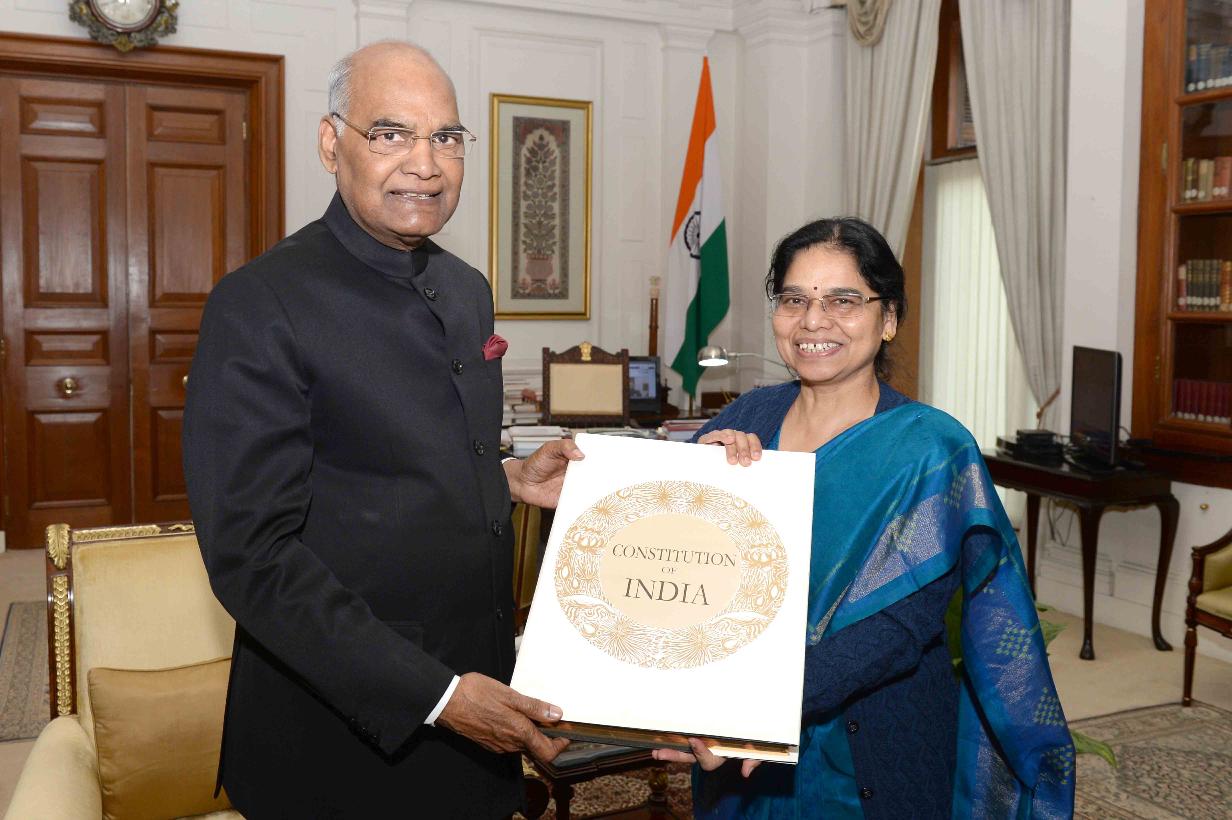 The Secretary General, Lok Sabha, Smt. Snehlata Shrivastava meeting with the President of India, Shri Ram Nath Kovind, at Rashtrapati Bhavan on December 12, 2017.