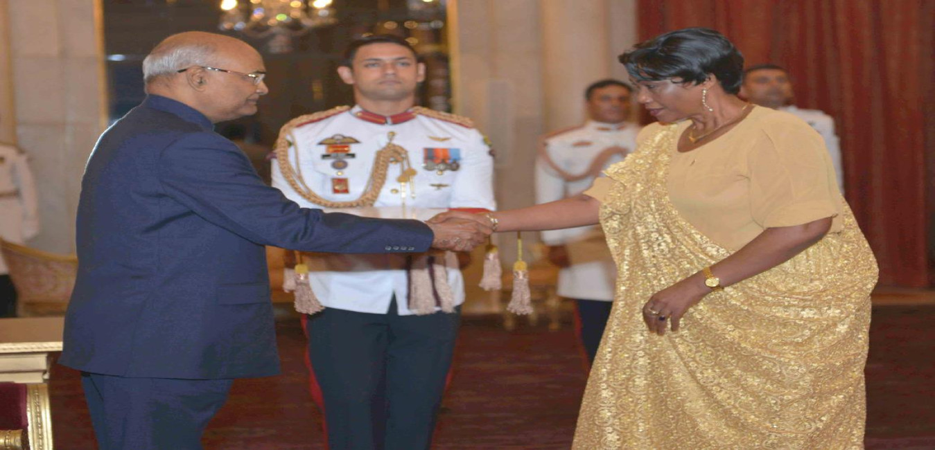 The Ambassador-designate of Burundi, HE Mrs. Stella Bdiriganya presenting her Credentials to the President of India, Shri Ram Nath Kovind, at Rashtrapati Bhavan on September 19, 2017.