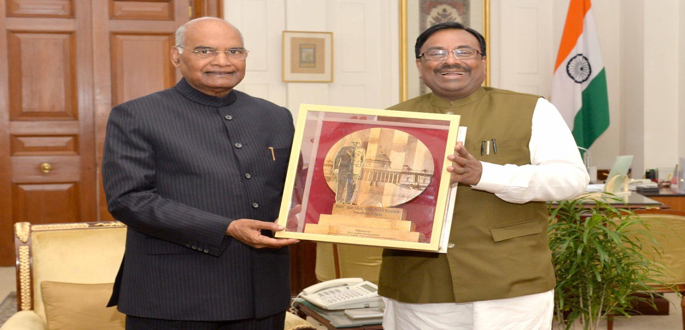 The Minister of Finance & Planning, Forests, Govt. of Maharashtra, Shri Sudhir Mungantiwar meeting with the President of India, Shri Ram Nath Kovind, at Rashtrapati Bhavan on July 21, 2018.
