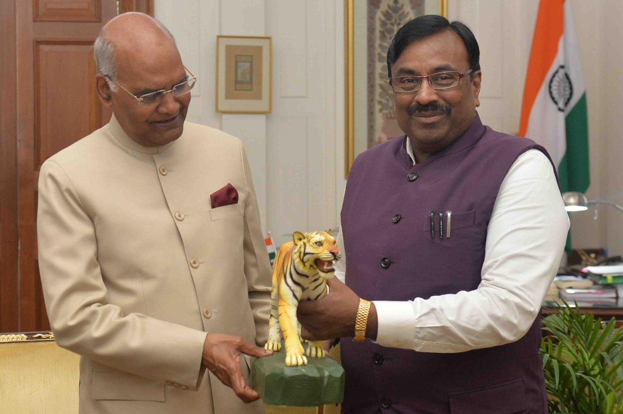 The Minister for Finance & Planning and Forests, Government of Maharashtra, Shri Sudhir Mungantiwar meeting with the President of India, Shri Ram Nath Kovind, at Rashtrapati Bhavan on January 10, 2019.