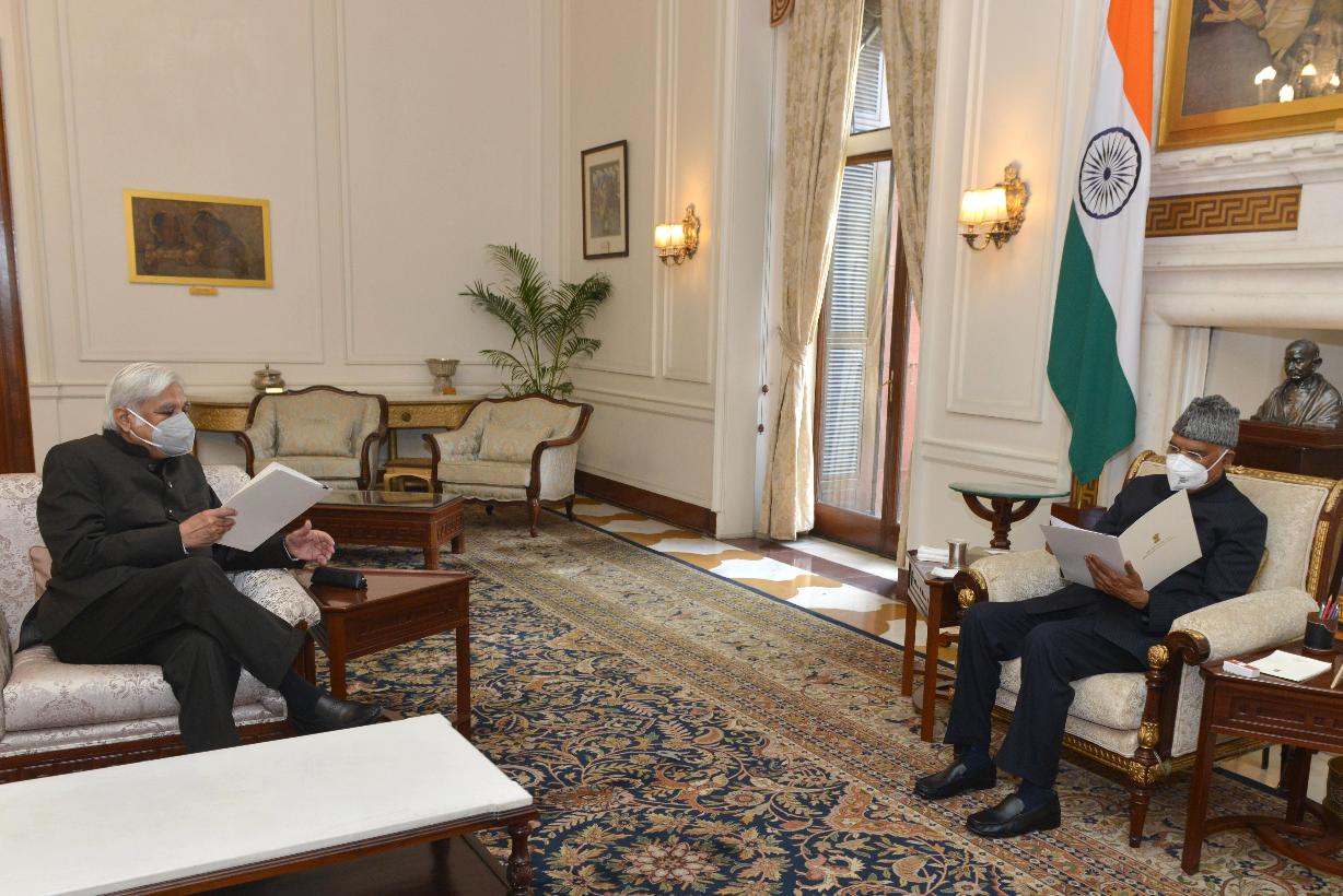 The Chief Election Commissioner of India, Shri Sunil Arora calling on the President of India, Shri Ram Nath Kovind, at Rashtrapati Bhavan on December 23, 2020.