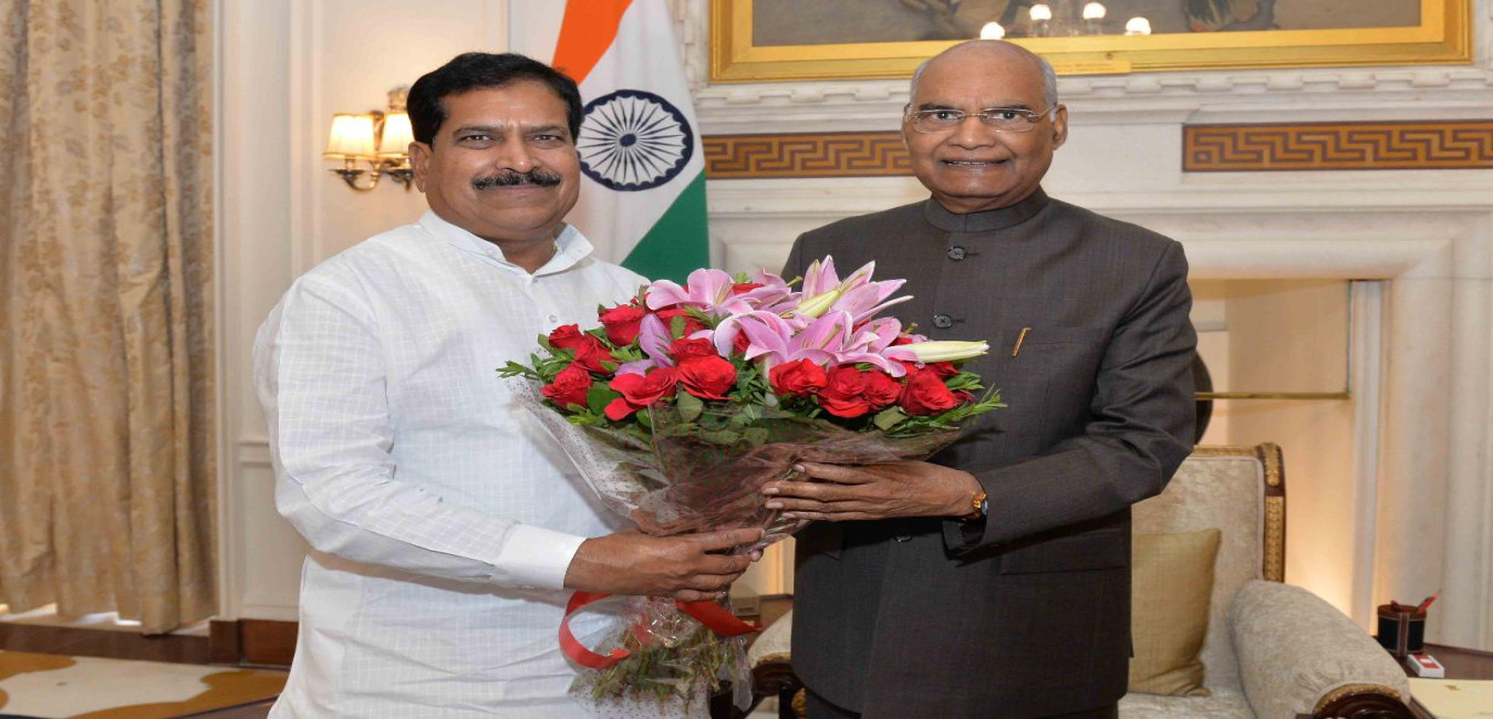 The Minister of State for Railways, Shri Suresh Chanabasappa Angadi meeting with the President of India, Shri Ram Nath Kovind, at Rashtrapati Bhavan on July 03, 2019.