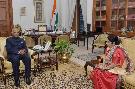 The Minister of External Affairs, Smt. Sushma Swaraj meeting with the President of India, Shri Ram Nath Kovind, at Rashtrapati Bhavan on August 25, 2018.