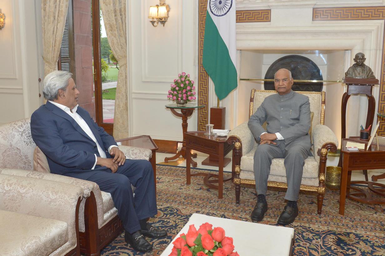 The former Governor of Mizoram, Shri Swaraj Kaushal meeting with the President of India, Shri Ram Nath Kovind, at Rashtrapati Bhavan on March 04, 2020.