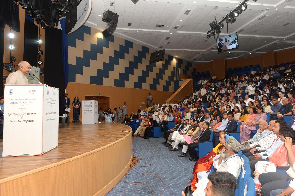 The President of India, Shri Ram Nath Kovind inaugurates a seminar "Spirituality for Human and Social Development" organised by Ahimsa Vishwa Bharti to mark the 150th birth anniversary of Mahatma Gandhi, in New Delhi on September 26, 2019.