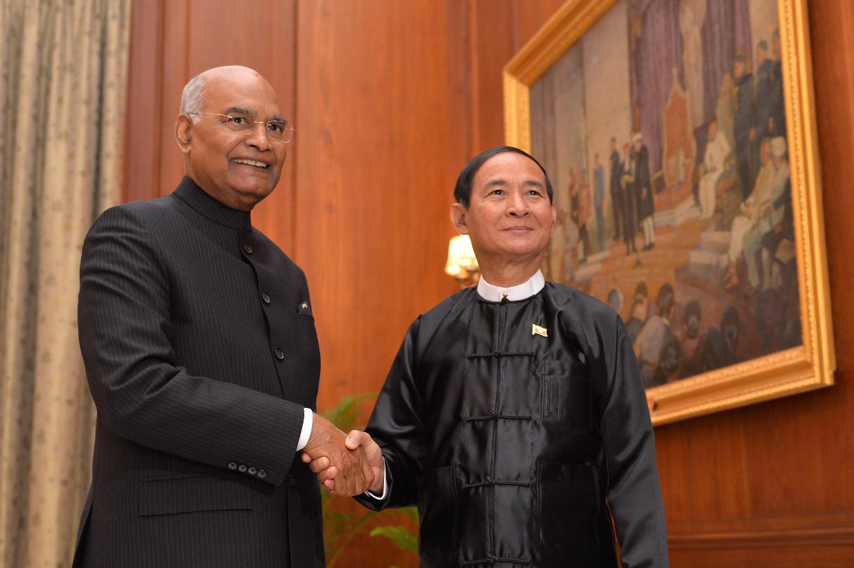 The President of the Republic of the Union of Myanmar, H.E. Mr. U Win Myint calling on the President of India, Shri Ram Nath Kovind, at Rashtrapati Bhavan on February 27, 2020.
