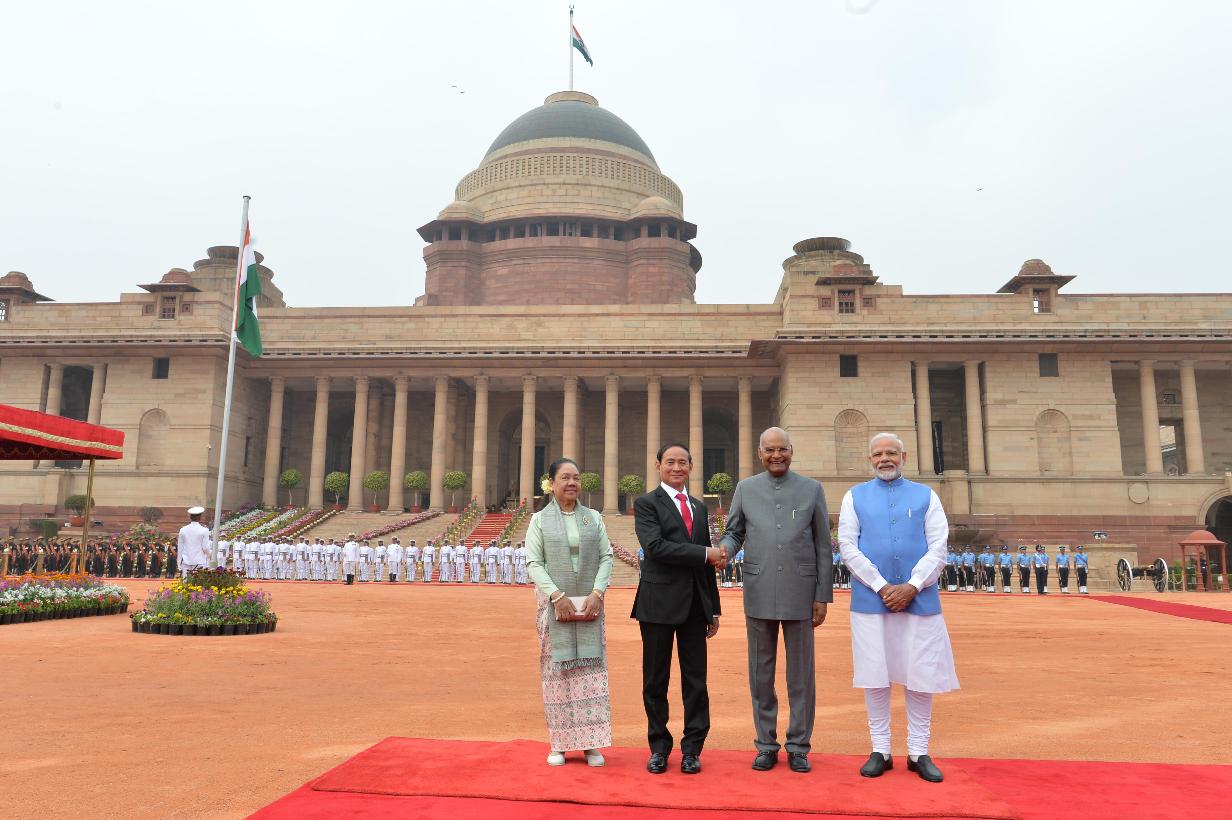 The President of India, Shri Ram Nath Kovind accords a ceremonial welcome to the President of the Republic of the Union of Myanmar, H.E. Mr. U Win Myint, at Rashtrapati Bhavan on February 27, 2020.