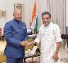 The Minister for Human Resource Development, Shri Upendra Kushwaha calling on the President of India, Shri Ram Nath Kovind, at Rashtrapati Bhavan on October 23, 2017.