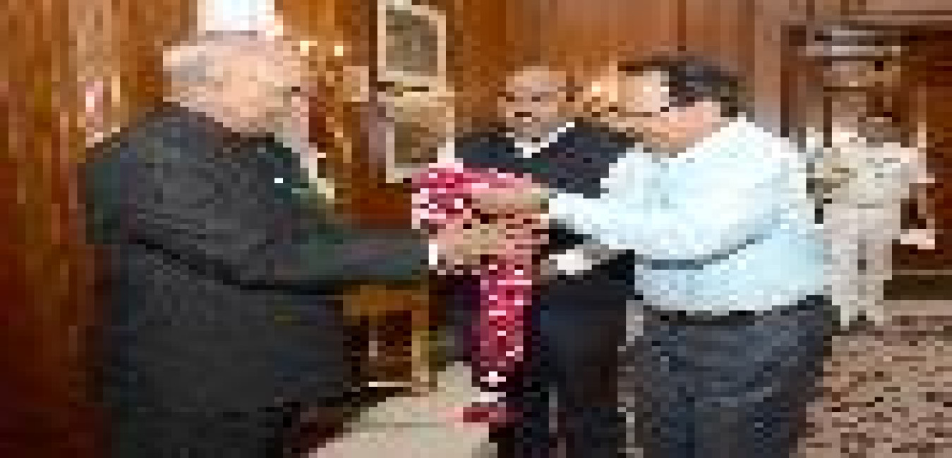 Smt. Usha Kumar, General Secretary, Anjuman Sair-e-Gul Faroshan with others presenting a Pankha of Phool Waalon Ki Sair to the President of India, Shri Ram Nath Kovind, at Rashtrapati Bhavan on October 31, 2017.