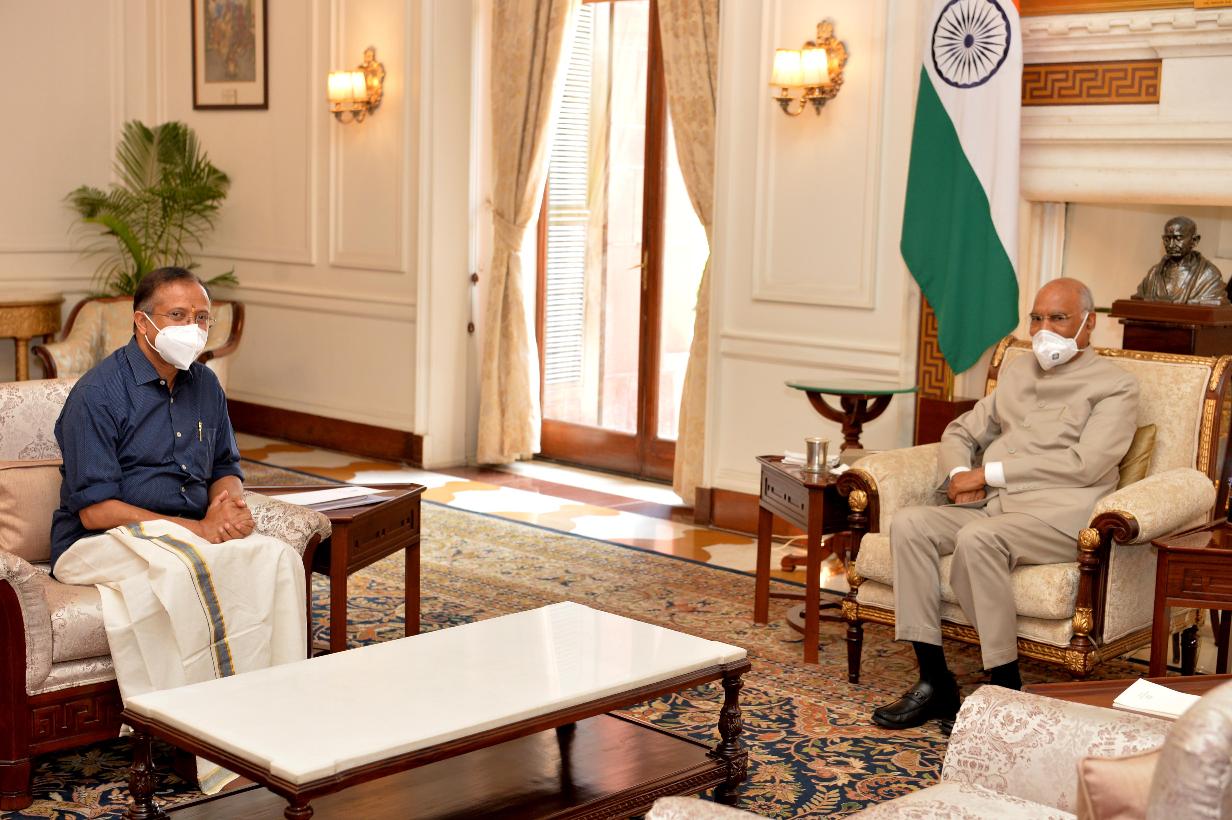 The Minister of State for External Affairs and Parliamentary Affairs, Shri V. Muraleedharan meeting with the President of India, Shri Ram Nath Kovind, at Rashtrapati Bhavan on July 13, 2020.