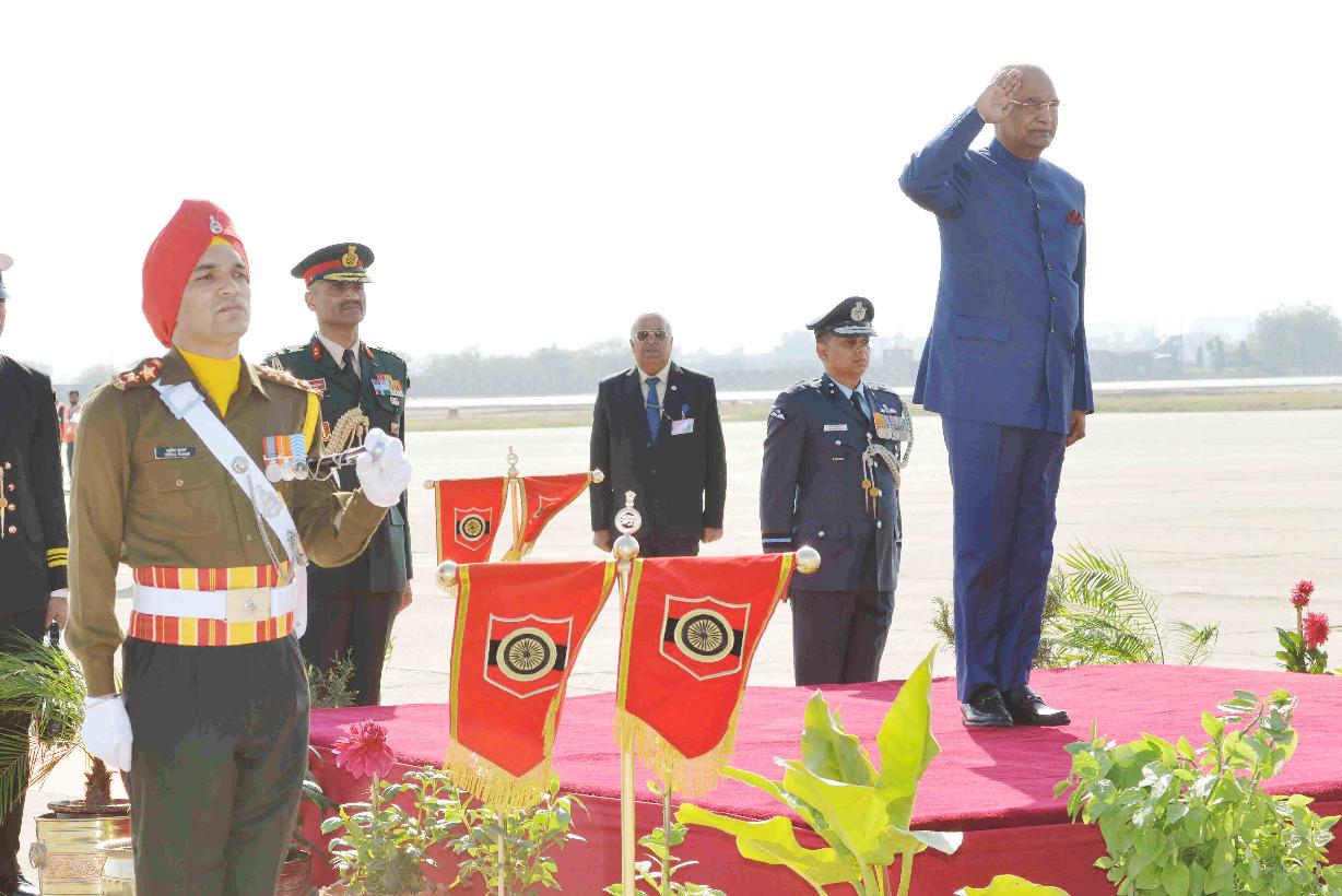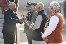 The President of India, Shri Ram Nath Kovind being received by the Governor, Punjab, Shri V.P. Singh Badnore, the Governor, Haryana, Shri Kaptan Singh Solanki, the Governor, Himachal Pradesh, Acharya Dev Vrat and the Chief Minister, Haryana, Shri Manohar Lal Khattar, at Chandigarh on February 27, 2018.