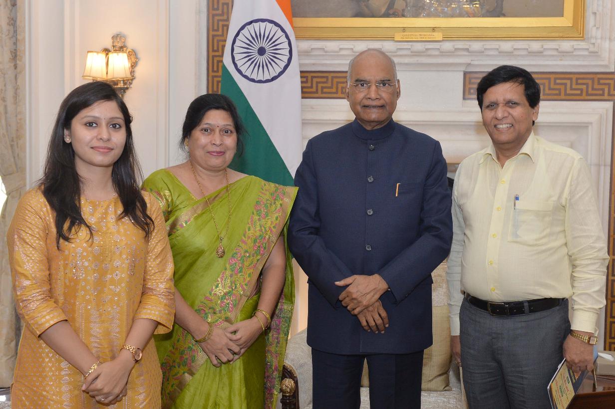 Dr. Veena Arya from Kanpur along with her family meeting with the President of India, Shri Ram Nath Kovind, at Rashtrapati Bhavan on November 05, 2019.