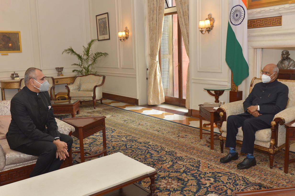 The Ambassador-designate of India to Zimbabwe, Shri Vijay Khanduja meeting with the President of India, Shri Ram Nath Kovind, at Rashtrapati Bhavan on October 27, 2020.