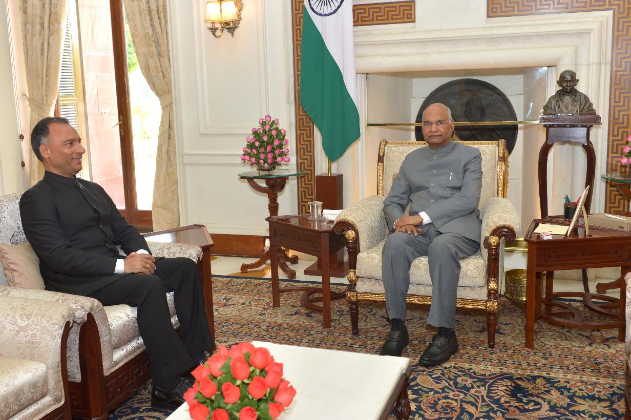 The Chief Secretary, Govt. of NCT of Delhi, Shri Vijay Kumar Dev meeting with the President of India, Shri Ram Nath Kovind, at Rashtrapati Bhavan on March 04, 2020.