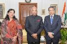 The Chief Justice of Orissa High Court, Shri Justice Vineet Saran along with his wife meeting with the President of India, Shri Ram Nath Kovind, at Rashtrapati Bhavan on January 20, 2018.