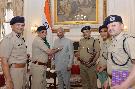 Shri Vipin Kental along with a delegation from Delhi Fire Service meeting with the President of India, Shri Ram Nath Kovind, at Rashtrapati Bhavan on April 15, 2019.