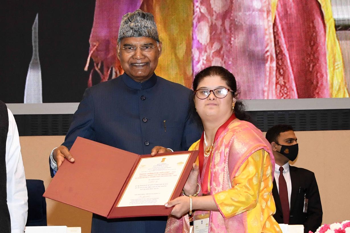 The President of India, Shri Ram Nath Kovind presenting the National Awards for the Empowerment of Persons with Disabilities, at Vigyan Bhavan, in New Delhi on December 03, 2021.