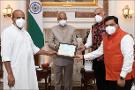 The Union Minister of Social Justice and Empowerment, Dr. Virendra Kumar calling on the President of India, Shri Ram Nath Kovind, at Rashtrapati Bhavan on July 16, 2021.