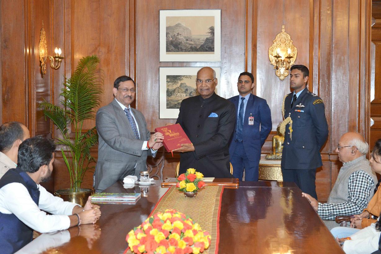 Shri Vireshwar Dwivedi with others meeting with the President of India, Shri Ram Nath Kovind, at Rashtrapati Bhavan on January 10, 2018.