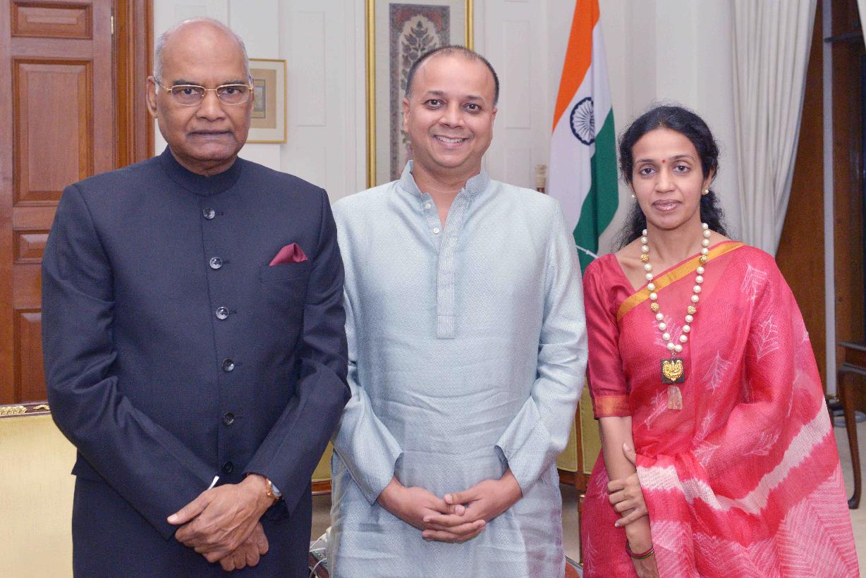 Smt. & Shri Vivek Gupta, MP (RS) meeting with the President of India, Shri Ram Nath Kovind, at Rashtrapati Bhavan on August 23, 2017.