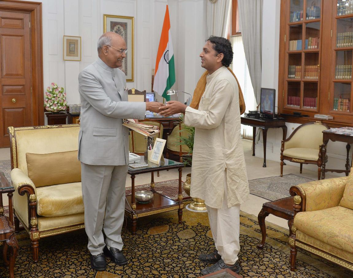 Shri Vivekji, Founder, Ananda Hi Ananda, Nagpur meeting with the President of India, Shri Ram Nath Kovind, at Rashtrapati Bhavan on June 11, 2018.