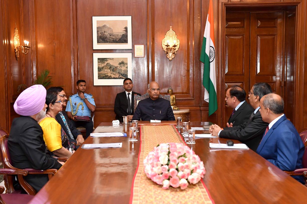 The Secretary, Ministry of Road Transport & Highways, Shri Yudhvir Singh Malik with others meeting with the President of India, Shri Ram Nath Kovind, at Rashtrapati Bhavan on March 18, 2019.