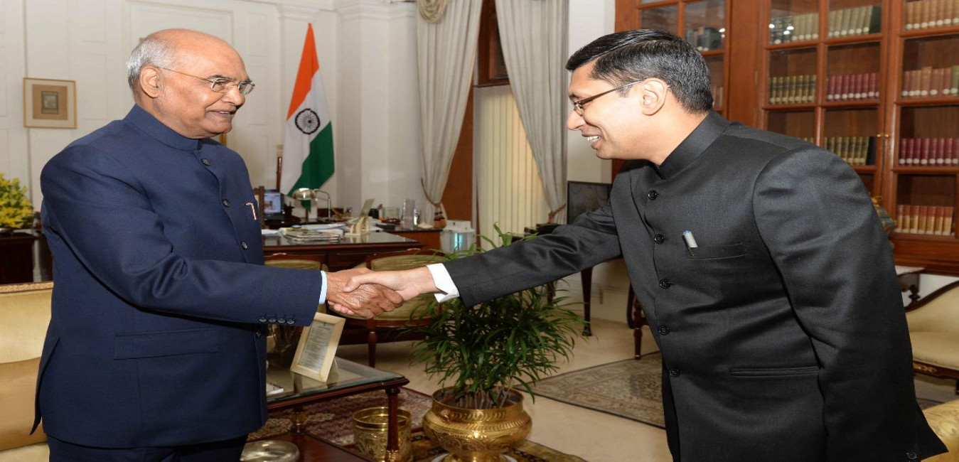The Ambassador-designate of India to Croatia, Shri Arindam Bagchi meeting with the President of India, Shri Ram Nath Kovind, at Rashtrapati Bhavan on October 25, 2018.