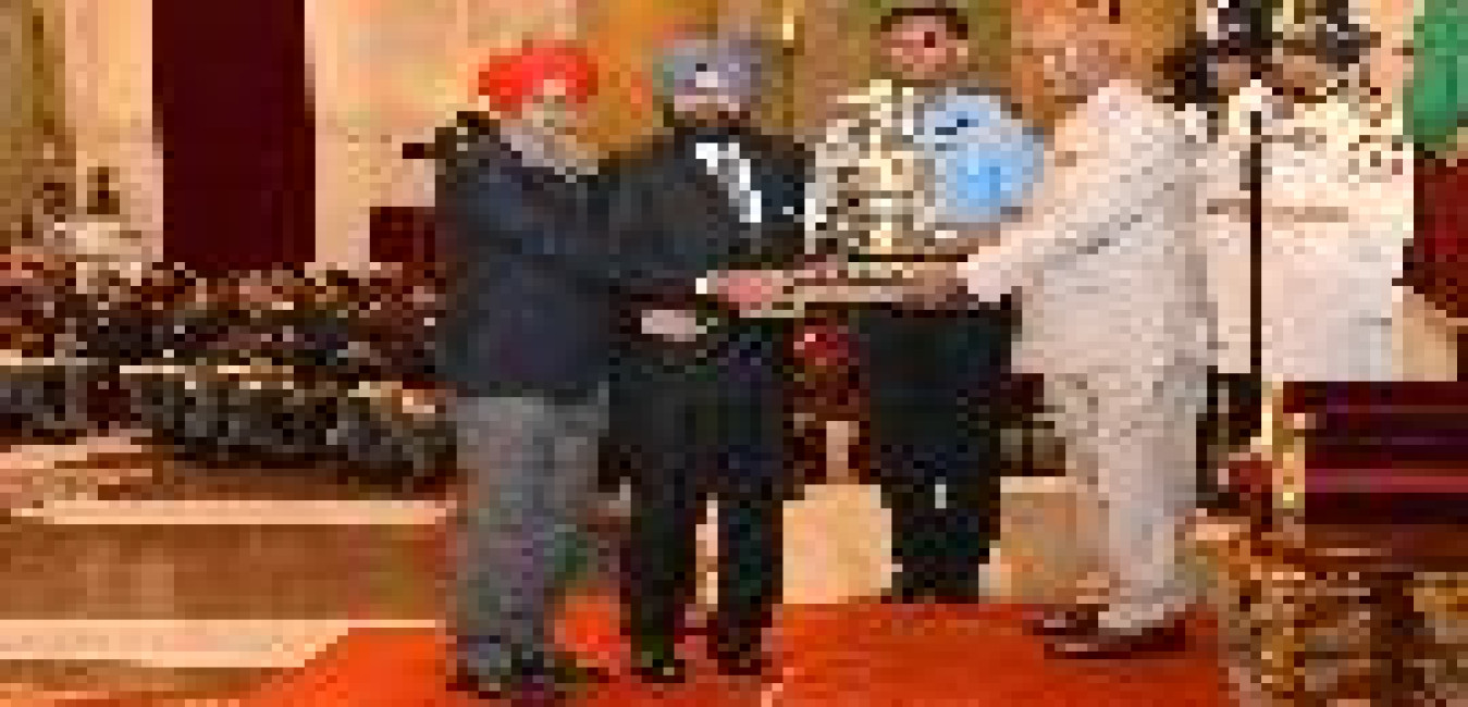 The President of India, Shri Ram Nath Kovind presenting the Dronacharya Awards 2018 to Shri Sukhdev Singh Pannu, Subedar Chenanda Achaiah Kuttappa, Shri A. Sriniva Rao, Shri Vijay Sharma, Shri V.R. Beedu, Shri Tarak Sinha, Shri Clarence Lobo and Shri Jiwan Kumar Sharma, at the National Sports & Adventure Awards function, at Rashtrapati Bhavan on September 25, 2018.