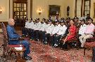 The President of India, Shri Ram Nath Kovind meeting with the students and teachers from Mon, Nagaland attending National Integration Tour, organised by Eastern Command of the Indian Army, at Rashtrapati Bhavan on September 13, 2018.