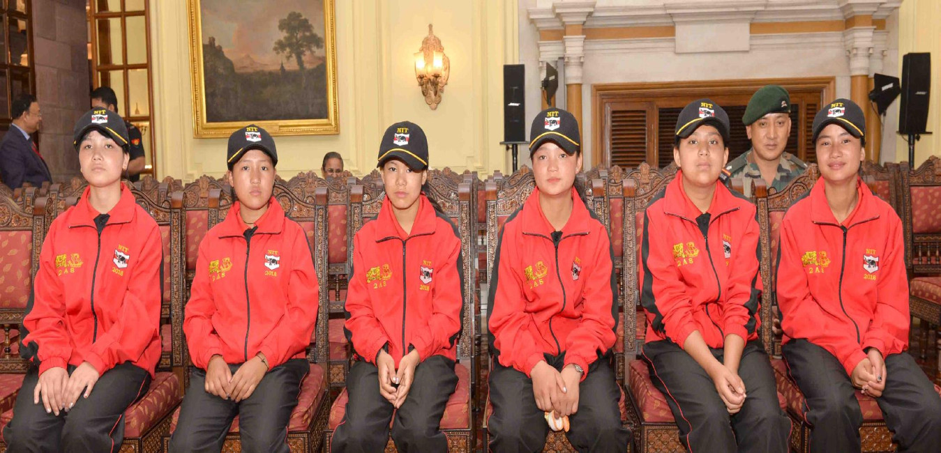 The President of India, Shri Ram Nath Kovind meeting with the girls students from Bomdila, Arunachal Pradesh, attending National Integration Tour, organised by 2 Arunachal Scouts/HQ 4 Corps of Eastern Command, at Rashtrapati Bhavan on August 24, 2018.
