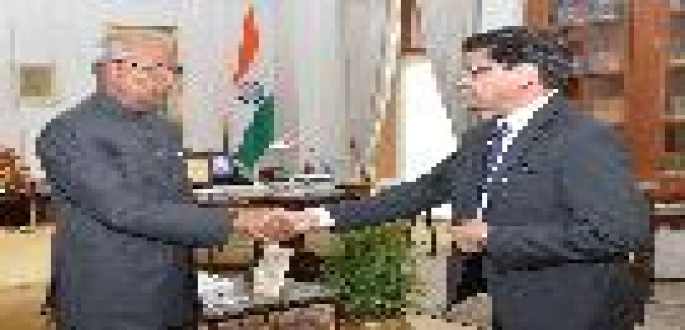 The Ambassador of India to Azerbaijan, Shri Sanjay Rana calling on the President of India, Shri Ram Nath Kovind, at Rashtrapati Bhavan on July 03, 2018.