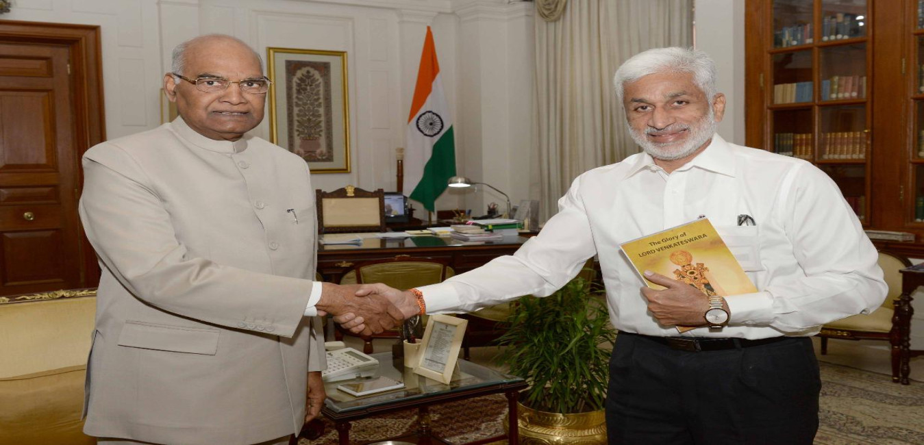 Shri V. Vijaysai Reddy, MP (RS) meeting with the President of India, Shri Ram Nath Kovind, at Rashtrapati Bhavan on July 04, 2018.