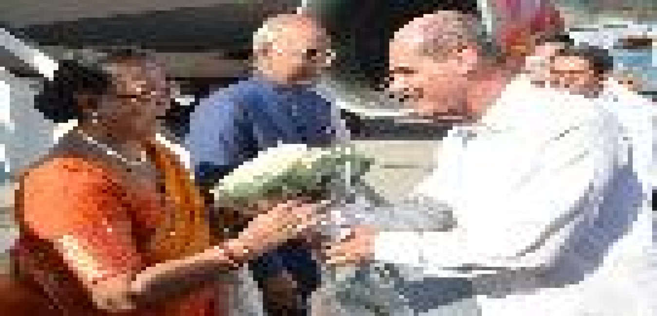 The President of India, Shri Ram Nath Kovind garlanding the Statues of Baba and Mai (the symbolic memorial of the arrival of Indian immigrants in Suriname in 1873), in Suriname on June 20, 2018.