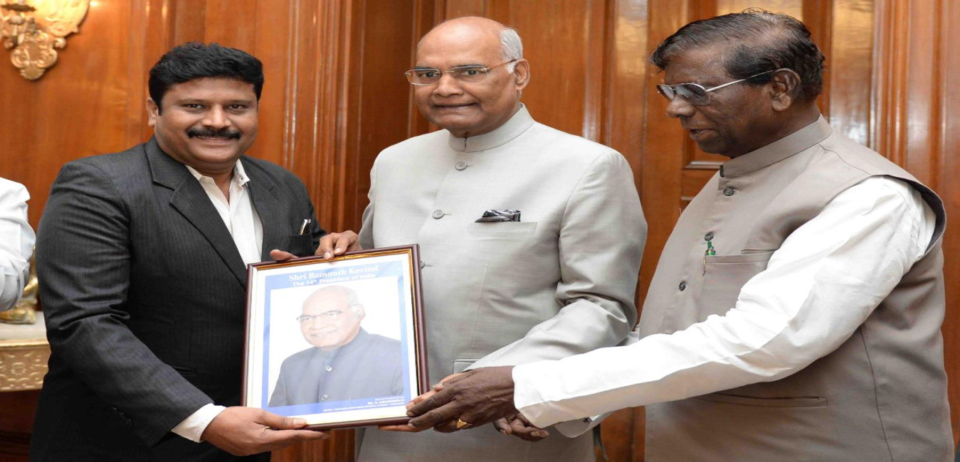 Dr. Ajay Kumar Sonkar from Port Blair meeting with the President of India, Shri Ram Nath Kovind, at Rashtrapati Bhavan on May 16, 2018.