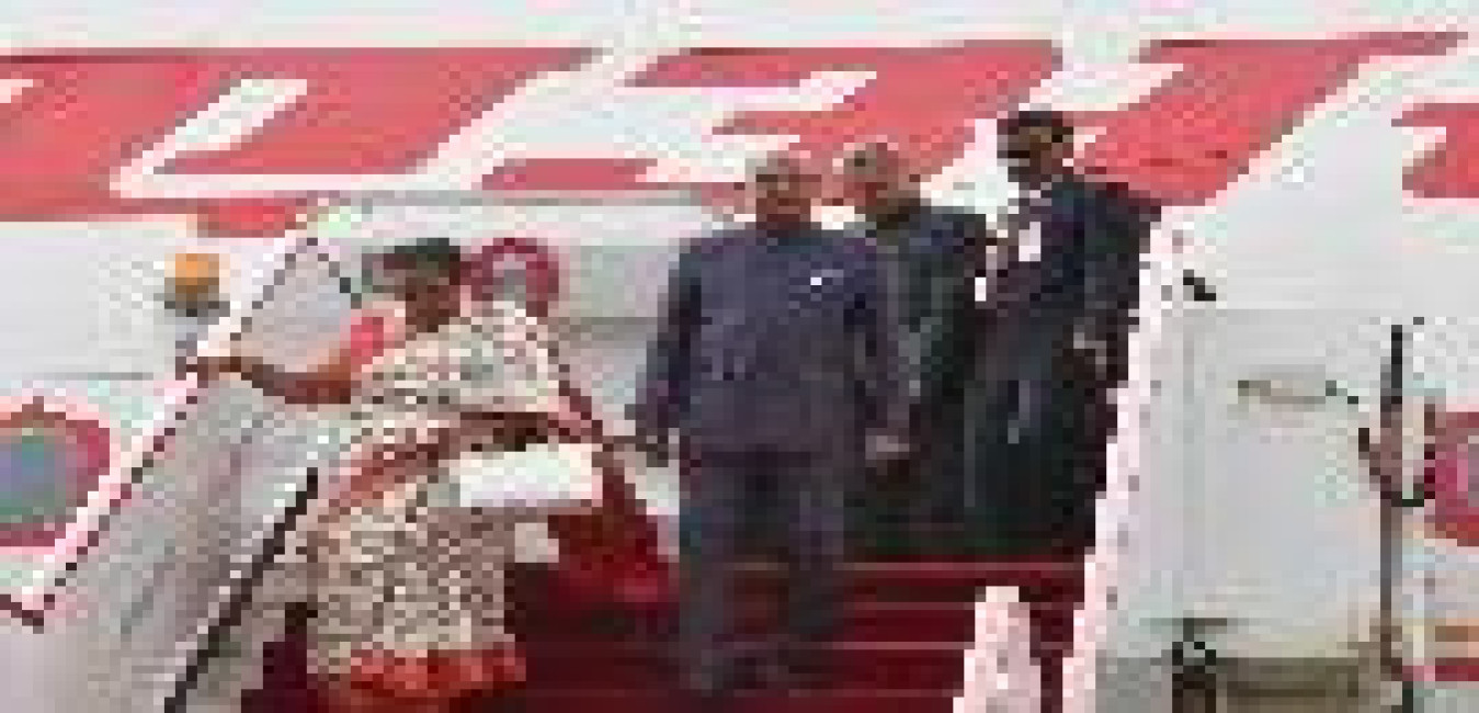 The President of India, Shri Ram Nath Kovind being received by the President of the Republic of Equatorial Guinea, H.E. Mr. Obiang Nguema Mbasogo, at Presidential Palace, in the Republic of Equatorial Guinea on April 08, 2018.