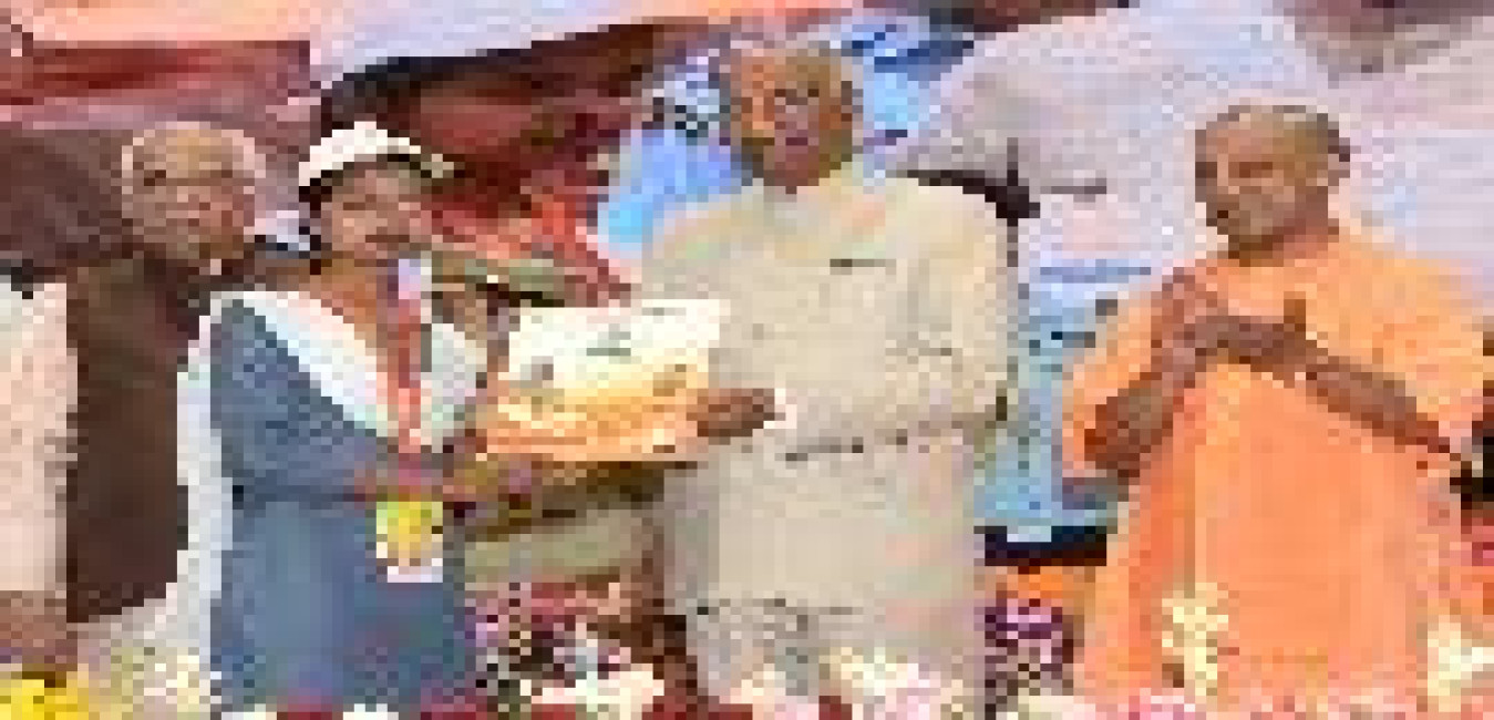 The President of India, Shri Ram Nath Kovind receiving the first copy of the Sanskrit translation of the book 'Charaiveti Charaiveti' written by the Governor of Uttar Pradesh, Shri Ram Naik, at Varanasi, in Uttar Pradesh on March 26, 2018.