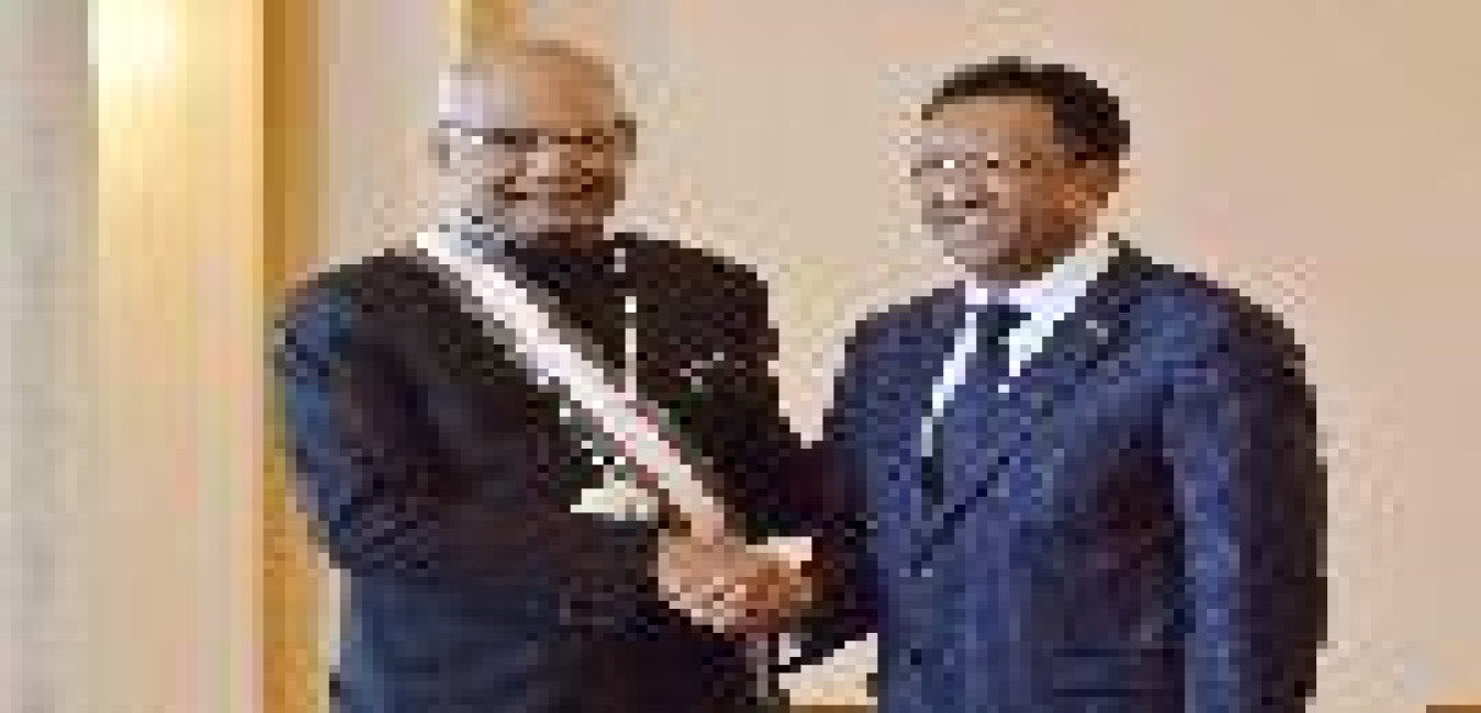 The President of Madagascar, H.E. Mr. Hery Rajaonarimampianina conferring the Grand Cross of the Second Class on the President of India, Shri Ram Nath Kovind, at Presidential Lavoloha Palace, in Madagascar on March 14, 2018. This is the highest honour Madagascar bestows on a non-citizen.