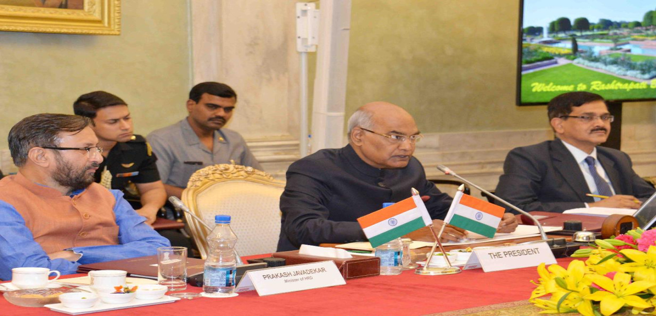 The President of India, Shri Ram Nath Kovind meeting with the Directors of Indian Institutes of Technology (IITs), Indian Institute of Science Bangalore (IISC-B) and Indian Institutes of Science Education and Research (IISERs), at Rastrapati Bhavan on March 06, 2018.