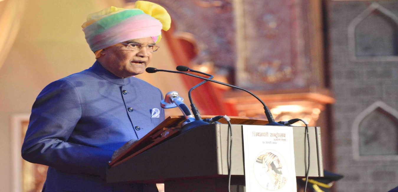 The President of India, Shri Ram Nath Kovind addressing a function, organised by the Akhil Bhartiya Shivarajyabhishek Mahotsav Samiti on the occasion of Shivaji Jayanti, in New Delhi on February 19, 2018.