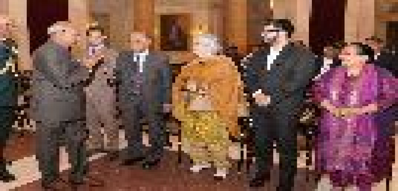 The President of India, Shri Ram Nath Kovind paying floral tributes to Dr. Zakir Hussain, former President of India on the occasion of his Birth Anniversary, at Rashtrapati Bhavan on February 08, 2018. Family members of Dr. Zakir Hussain also paid tributes to him.