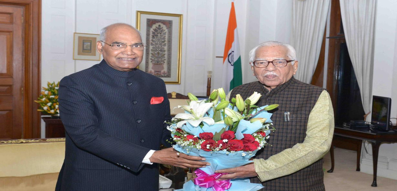 The Governor of Uttar Pradesh, Shri Ram Naik calling on the President of India, Shri Ram Nath Kovind, at Rashtrapati Bhavan on February 04, 2018.