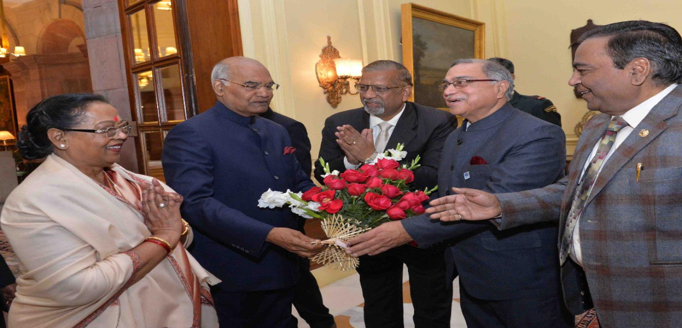 Shri Subhash Khanna and his family members from Kanpur meeting with the President of India, Shri Ram Nath Kovind and the First Lady of India, Smt. Savita Kovind, at Rashtrapati Bhavan on January 09, 2018.