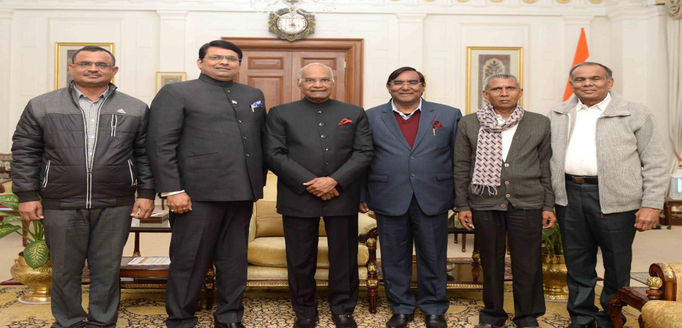 Shri Bahadur Singh Koli, MP (LS) from Bharatpur (Rajasthan) with others meeting with the President of India, Shri Ram Nath Kovind, at Rashtrapati Bhavan on January 03, 2018.
