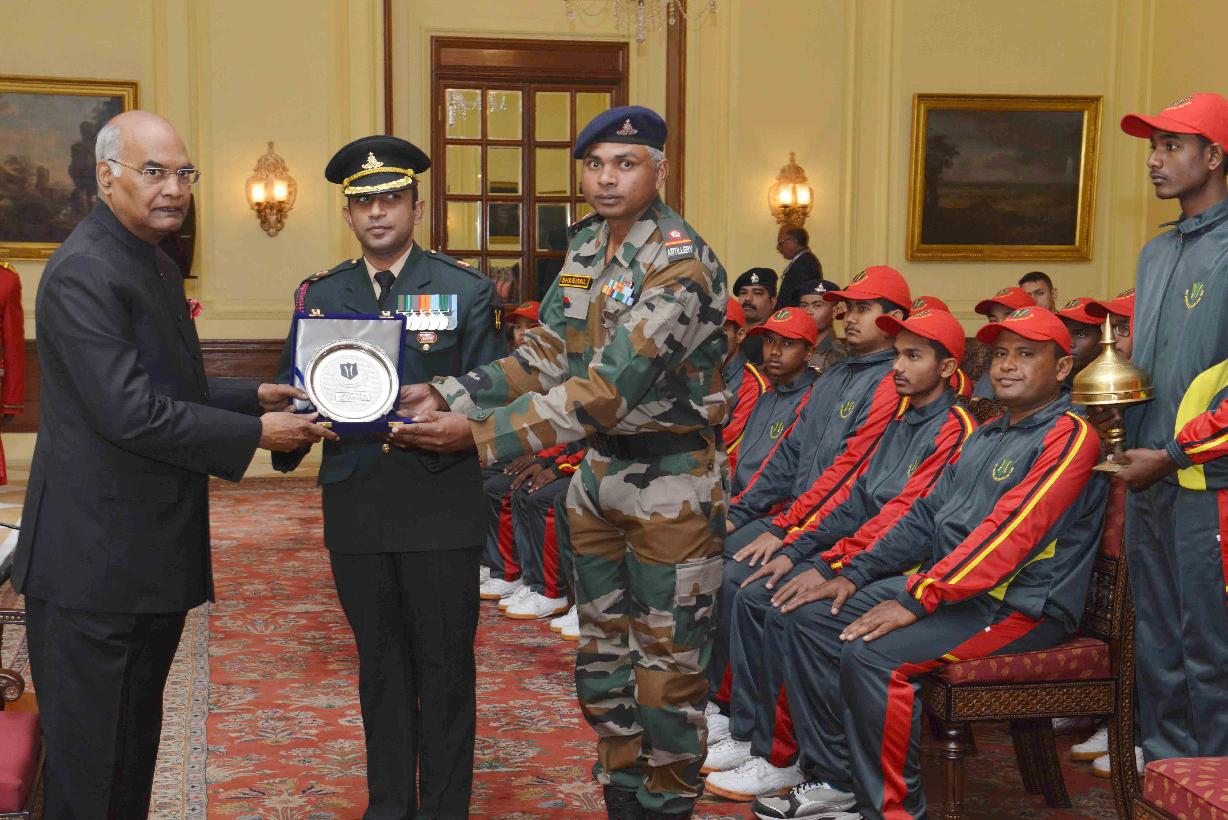 The students from Dibrugarh and Charaideo Districts of Assam attending National Integration Tour, organised by the HQ 2 Mountain Artillery Brigade meeting with the President of India, Shri Ram Nath Kovind, at Rashtrapati Bhavan on January 02, 2018.