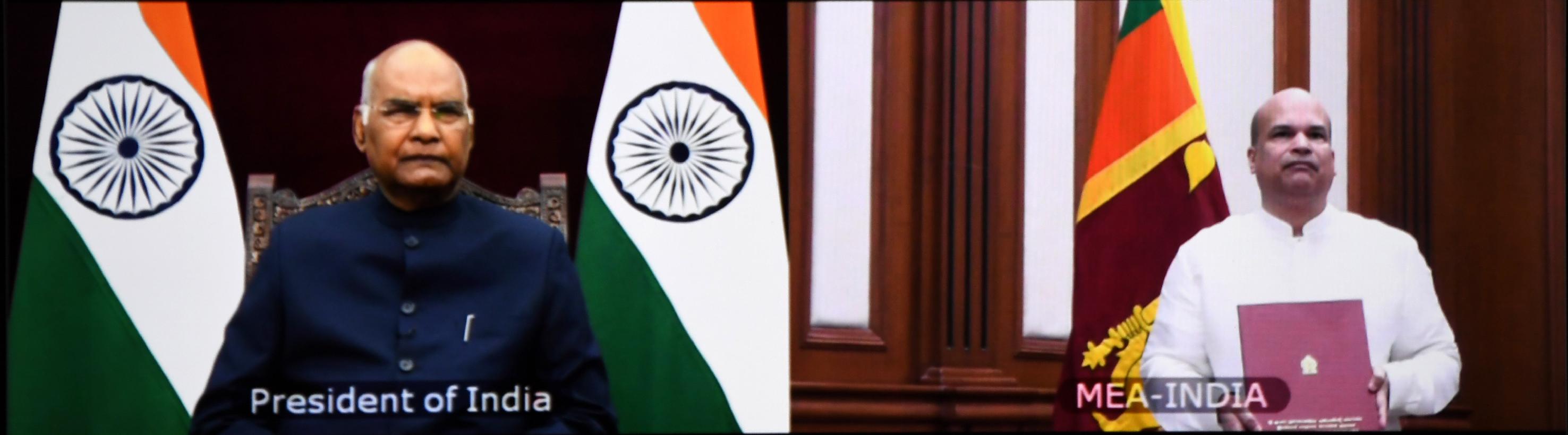The President of India, Shri Ram Nath Kovind receiving credentials from the High Commissioner of Democratic Socialist Republic of Sri Lanka, H.E. Mr. Asoka Milinda Moragoda, in a virtual ceremony, at Rashtrapati Bhavan on September 22, 2021.