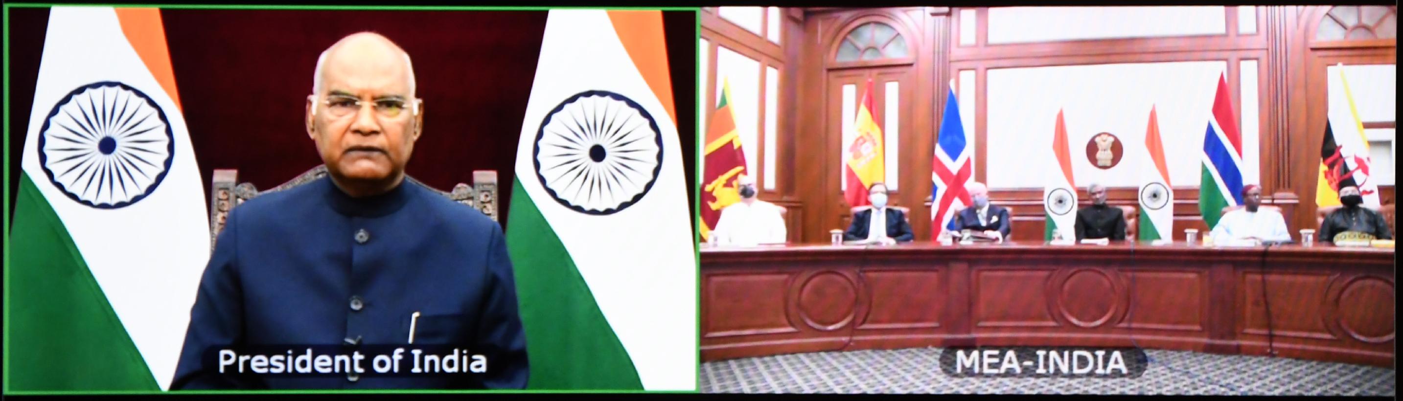 The President of India, Shri Ram Nath Kovind receiving credentials from the Ambassador of Iceland, H.E. Mr. Gudni Bragason, in a virtual ceremony, at Rashtrapati Bhavan on September 22, 2021.