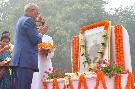 The President of India, Shri Ram Nath Kovind paying tributes at the statue of late Shri Jayprakash Narayan, at Patna, in Bihar on November 09, 2017.