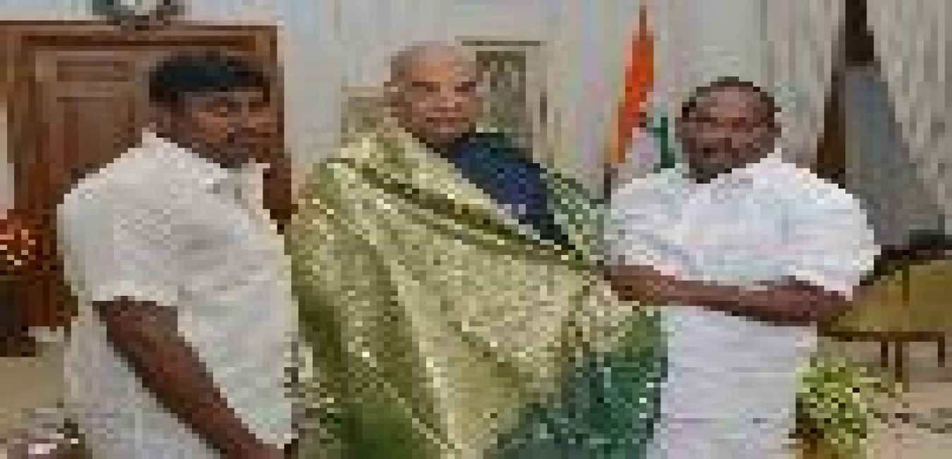 The Welfare Minister of Puducherry, Shri M. Kandasamy along with his son Shri K. Vignesh meeting with the President of India, Shri Ram Nath Kovind, at Rashtrapati Bhavan on October 26, 2017.