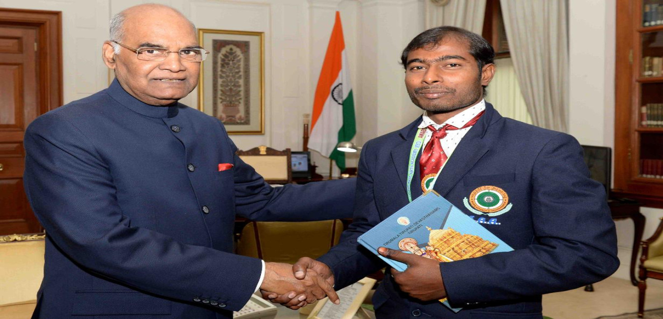 Shri Nagarjuna, Kho-Kho player from Andhra Pradesh meeting with the President of India, Shri Ram Nath Kovind, at Rashtrapati Bhavan on October 31, 2017.