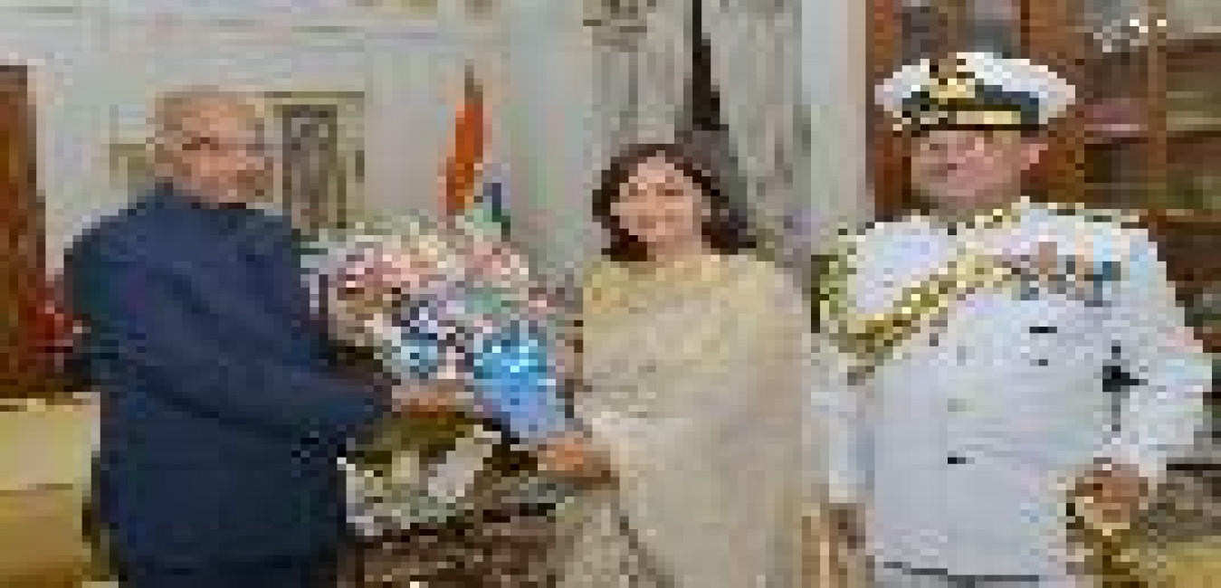 The Flag Officer Commanding-in-Chief, Eastern Command, Visakhapatnam, Vice Admiral H.C.S. Bisht and Smt. Bimla Bisht meeting with the President of India, Shri Ram Nath Kovind, at Rashtrapati Bhavan on October 26, 2017.